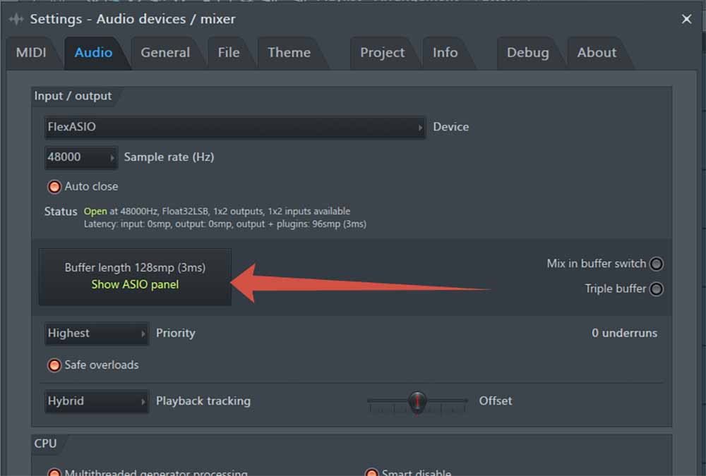 Но стоило подключить гитару и начался какой то цирк. ASIO4ALL, который раньше выручал, вдруг стал чудить. Вроде бы сначала всё хорошо, минимальная задержка, звук чистый, но спустя какое-то время в FL Studio начинались трески, хрипы, “пердеж” и заикания. Такое ощущение, будто система задыхается.