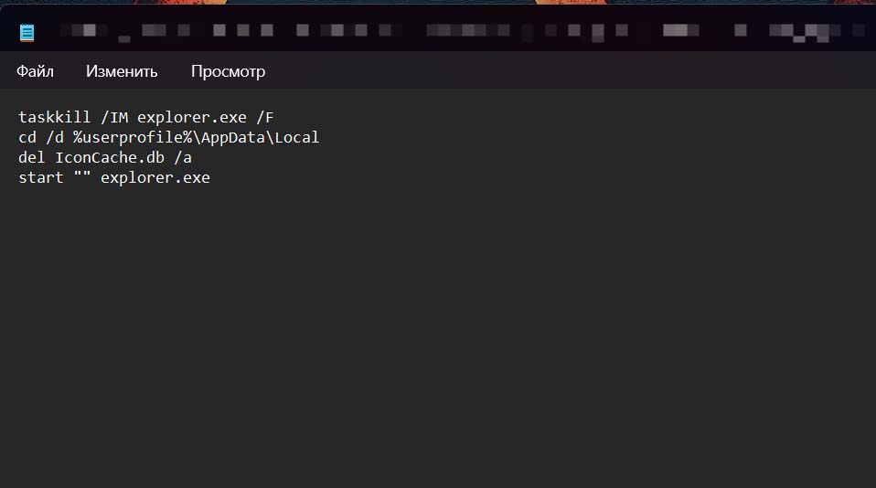 - Удаляет файл IconCache.db, содержащий повреждённый кэш